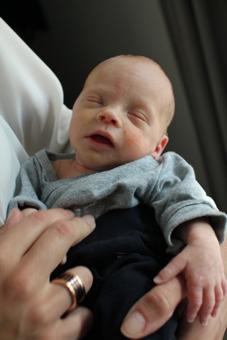 These days, the new parents are busy marveling at their baby’s expressive face and remarkably calm nature.