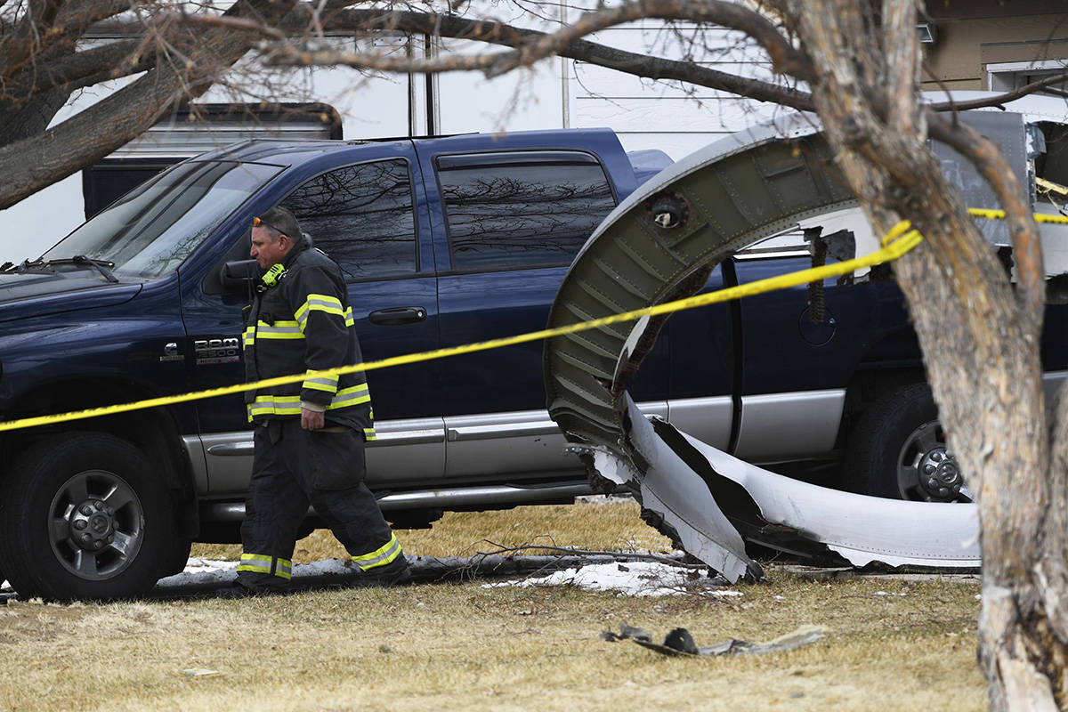 The Broomfield Police Department posted photos on Twitter showing large, circular pieces of debris that appeared to be the engine cowling leaning against a house in the suburb about 16 miles (40 kilometers) northwest of Denver. Police asked anyone injured on the ground to come forward.