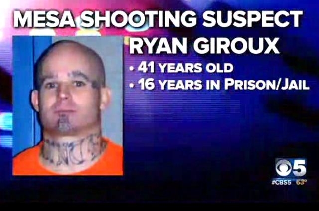 A Mesa Police Department SWAT team arrested Giroux on Wednesday after using a stun gun on him in a vacant condominium where he took refuge hours after the initial shooting.