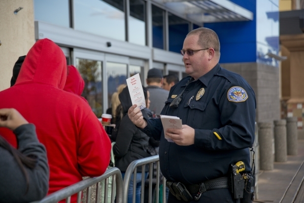 As dozens of customers lined up before the Best Buy on Marks Street near the Galleria at Sunset mall, officers handed out fliers with safety tips and information about the ReportIt online service.
