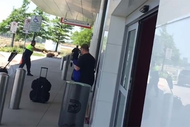 Video posted by Instagram user flashyfilms — and credited to Bryan Armstrong — shows people scattering on the sidewalk outside the baggage claim door at Dallas Love Field. An officer in a yellow vest is seen pointing his gun, and at least nine gunshots can be heard. A man repeatedly yells “stand down!” and a woman is heard screaming.
