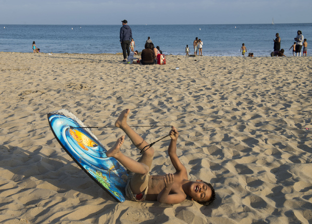 NEWPORT BEACH, Calif. — Thousands of Memorial Day beachgoers were kept out of the water Monday as lifeguards searched miles of popular Southern California shoreline for a shark they believe attacked a swimmer the day before.