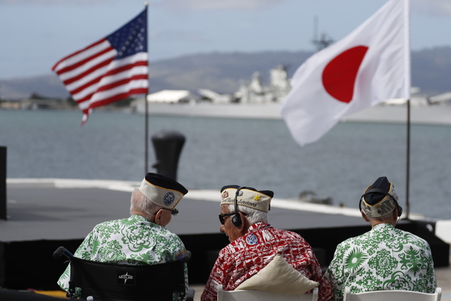 HONOLULU — Under a warm Oahu sun, with the tranquil, teal waters of Pearl Harbor behind them, former enemies came together to acknowledge the tremendous loss from the Japanese attack on U.S. military installations in Hawaii 75 years ago.