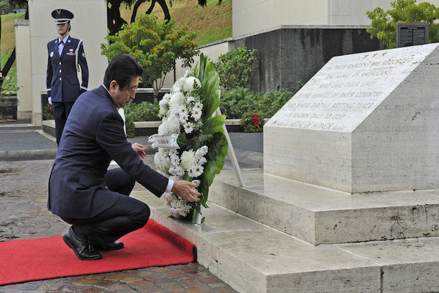 “As the prime minister of Japan, I offer my sincere and everlasting condolences to the souls of those who lost their lives here, as well as to the spirits of all the brave men and women whose lives were taken by a war that commenced in this very place,” Japanese Prime Minister Shinzo Abe said Tuesday.