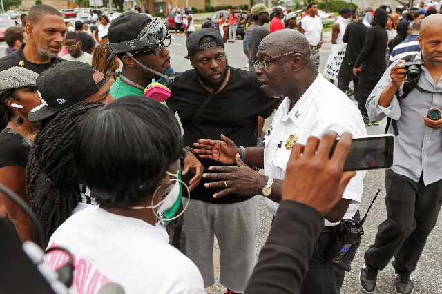 Dotson said at a late Wednesday press conference some protesters threw bricks and glass bottles at officers, who used shields to protect themselves and then tear gas to disperse the crowd. A car was set on fire and some local businesses had reported robbery attempts, he said.