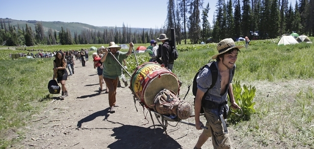 The gathering is expected to double in size this week as more members pour in to the Uinta-Wasatch-Cache National Forest for a four-day celebration that ends Friday. On Tuesday, some came in pairs, groups or by themselves in a variety of looks: dreadlocks, sundresses, with pets and dirt-caked faces.