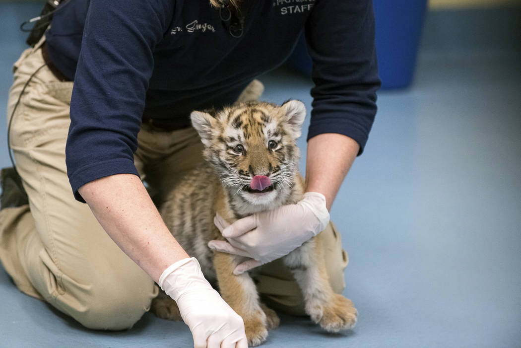 Zoo keepers at The Pittsburgh Zoo & PPG Aquarium on Tuesday showed off the twin male and female endangered Amur cubs, which were born Sept. 25. The keepers had noticed the cubs’ mother wasn’t caring for them 24 hours after their birth and decided to remove them.