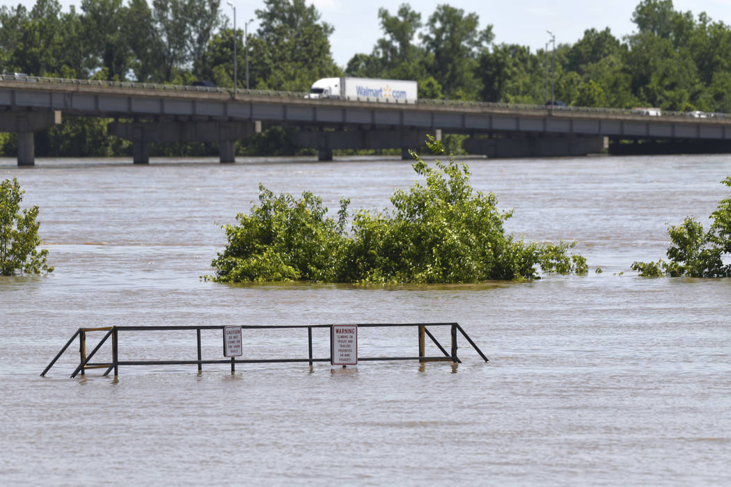 The fast-flowing Arkansas River smashed a 40-foot hole in a levee in rural western Arkansas, causing water to spill into a nearby community. In northeast Missouri, a levee was overtopped on the Mississippi River, and another levee was topped on the Missouri River in the central part of the state.
