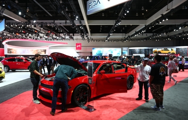 Attendees check out the 2016 Dodge Charger SRT Hellcat during the Los Angeles Auto Show on Thursday, Nov. 19, 2015. Chase Stevens/Las Vegas Review-Journal Follow @csstevensphoto