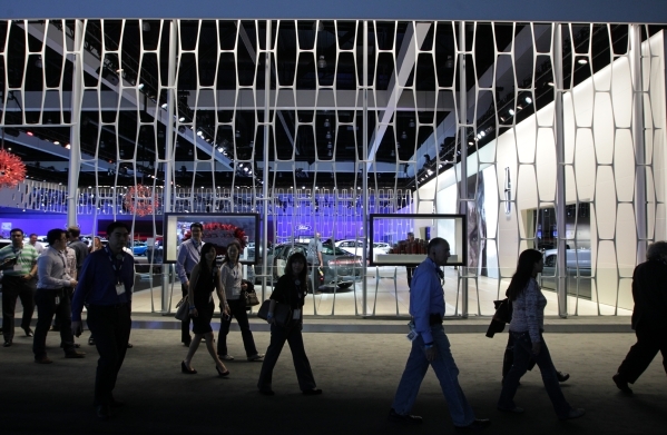 Attendees walk through an exhibit hall during the Los Angeles Auto Show on Thursday, Nov. 19, 2015. Chase Stevens/Las Vegas Review-Journal Follow @csstevensphoto