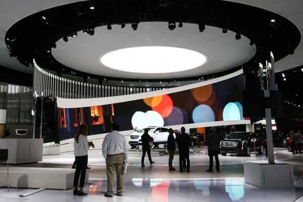 Attendees explore the Cadillac booth during the Los Angeles Auto Show on Thursday, Nov. 19, 2015. Chase Stevens/Las Vegas Review-Journal Follow @csstevensphoto