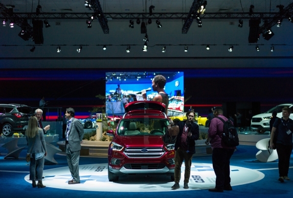 Attendees stand around the 2017 Ford Escape during the Los Angeles Auto Show on Thursday, Nov. 19, 2015. Chase Stevens/Las Vegas Review-Journal Follow @csstevensphoto