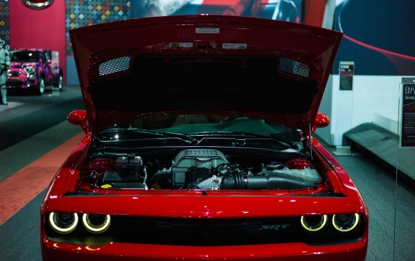 Details of a 2016 Dodge Challenger SRT Hellcat are shown during the Los Angeles Auto Show on Thursday, Nov. 19, 2015. Chase Stevens/Las Vegas Review-Journal Follow @csstevensphoto