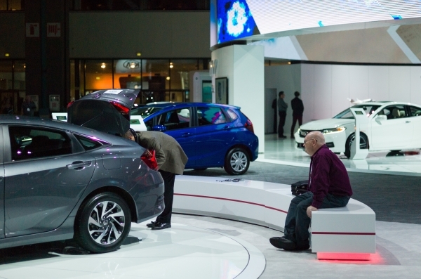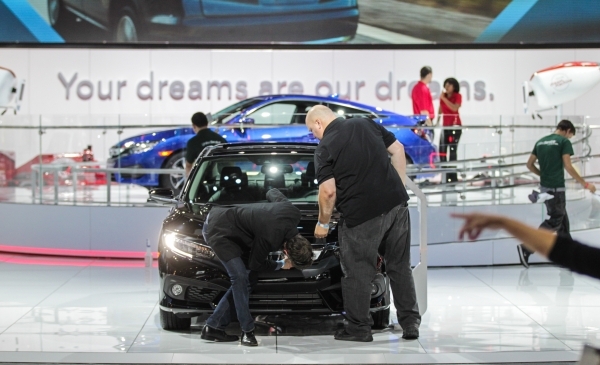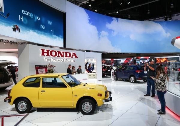 A man walks by the Honda booth during the Los Angeles Auto Show on Thursday, Nov. 19, 2015. Chase Stevens/Las Vegas Review-Journal Follow @csstevensphoto