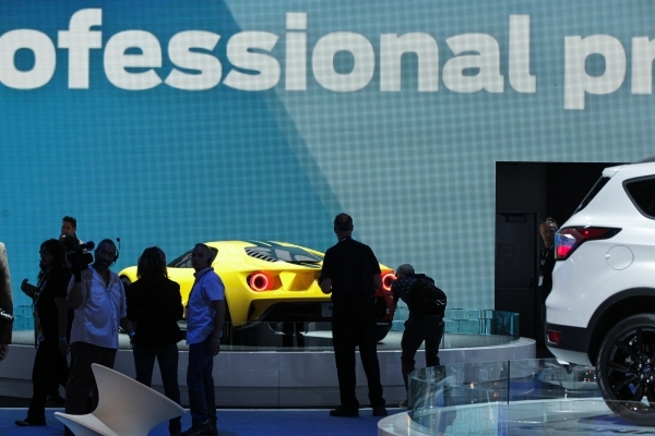 People take photos of the 2017 Ford GT during the Los Angeles Auto Show on Thursday, Nov. 19, 2015. Chase Stevens/Las Vegas Review-Journal Follow @csstevensphoto