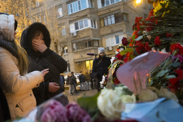 Flags were at half-staff across Russia on Monday, nationwide television stations canceled their entertainment programs and the Cabinet began its session with a moment of silence as part of the nationwide mourning. People piled up red and white carnations outside the Moscow office of the Alexandrov Ensemble, popular across the world for its fiery performances.