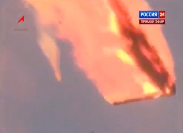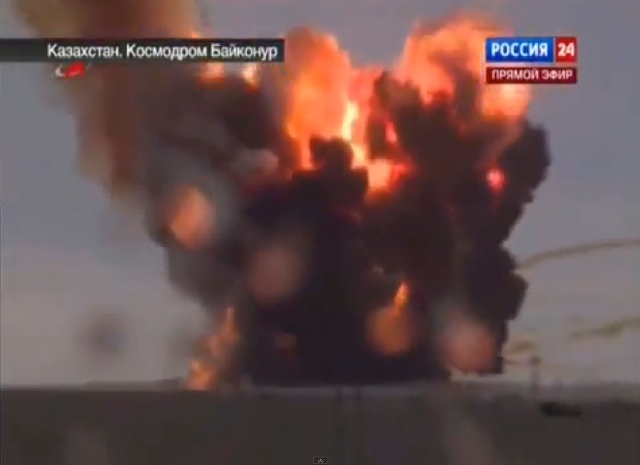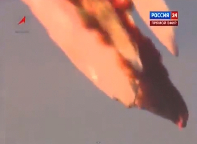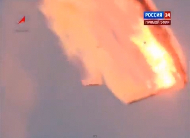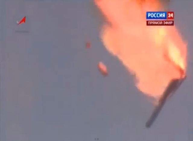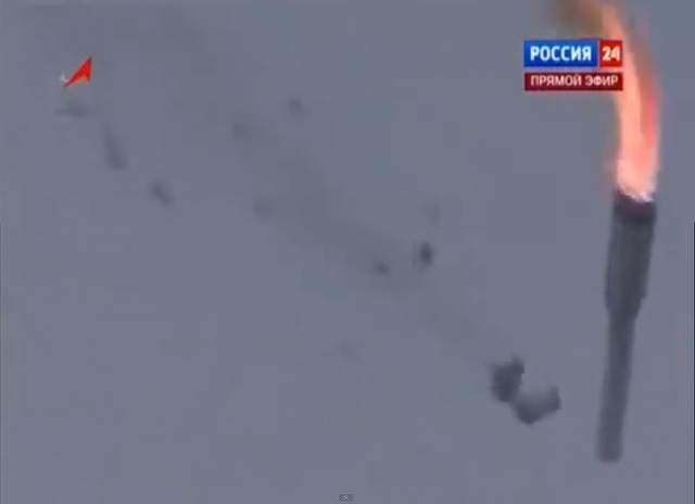 Live footage on the state news channel Rossiya-24 showed the rocket tilt to one side shortly after the launch, curve downward, catch fire and crash in a giant fireball.