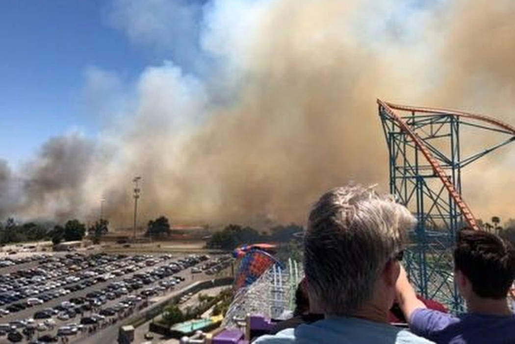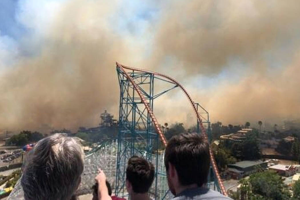 Six Flags Magic Mountain and Hurricane Harbor announced the evacuation shortly after noon, citing concern for the safety of park visitors and employees. About 40 minutes later, the park north of Los Angeles said on its Twitter account that fire officials asked guests to stay inside due to nearby road closures.