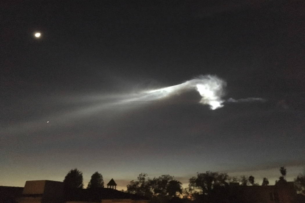 The launch in the setting sun created a shining, billowing streak that was widely seen throughout Southern California and as far away as Phoenix.