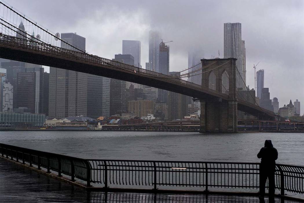 Later, steady rain continued to soak the region as the National Weather Service issued a high wind warning for New York City until 6 p.m. Monday.