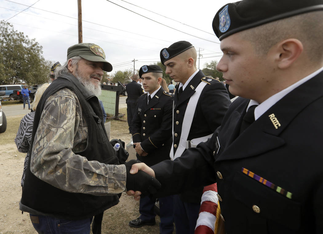 Retired Chief Warrant Officer Mike Gonzales, who led Saturday’s Veterans Day ceremony, said many veterans choose to live in the San Antonio area because of its deep military ties, and families tend to migrate to the city’s surrounding rural areas.