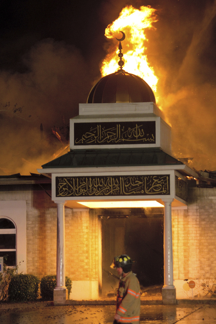 “It’s sad to stand there and watch it collapse down, and the fire was so huge,” Shahid Hashmi, the Islamic center’s president, said. “It looks completely destroyed.”