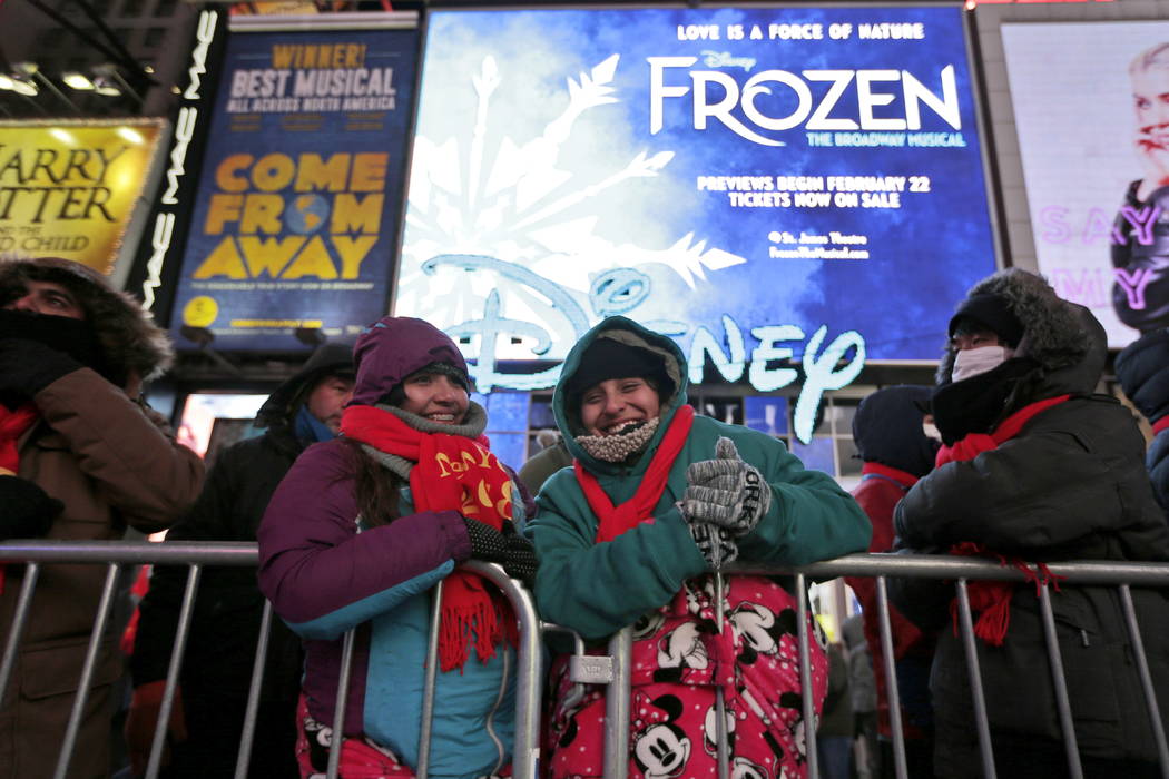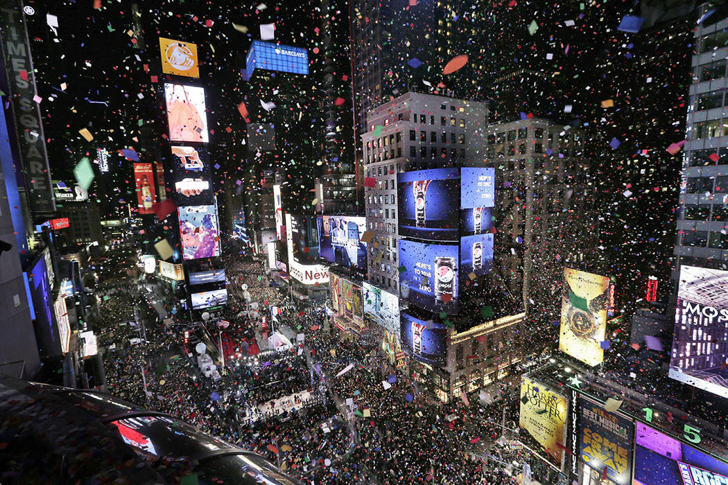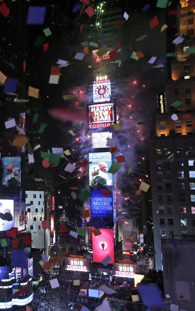 NEW YORK — The glittering crystal ball dropped with a burst of confetti and dazzling fireworks as revelers rang in 2018 in frigid Times Square — the second-coldest celebration there on record.
