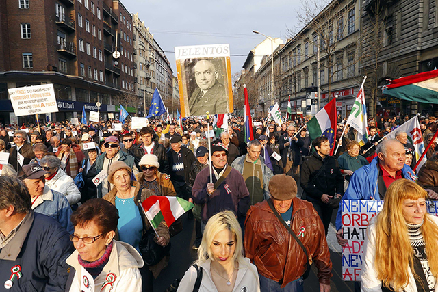 BUDAPEST — Thousands of Hungarians rallied against Prime Minister Viktor Orban’s government on Sunday, venting anger over allegations of corruption and a secretive nuclear deal with Russia, Hungary’s former communist overlord.