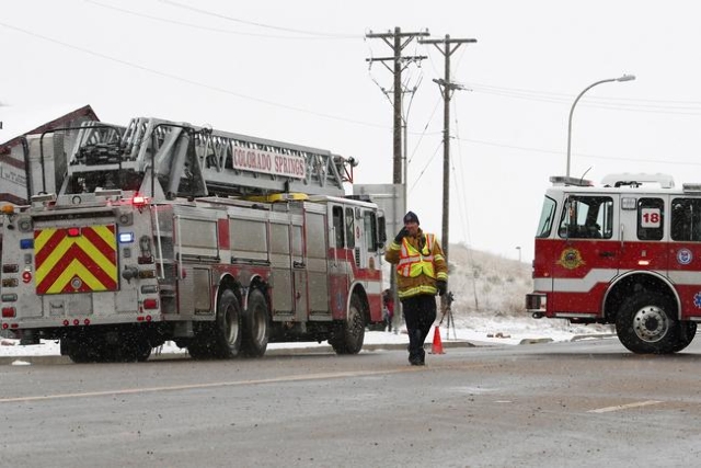 Ambulances wait on a road leading to a Planned Parenthood center after reports of an active shooter in Colorado Springs, Colorado November 27, 2015. (Isaiah J. Downing/Reuters)