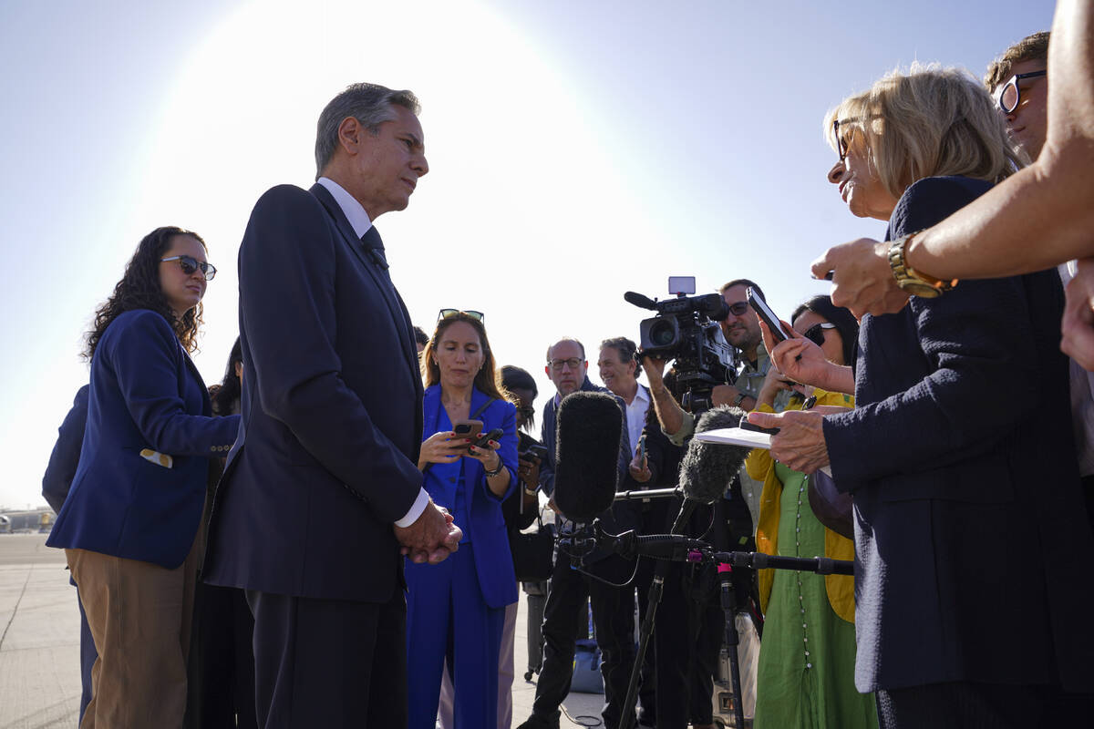 He spoke before traveling from Israel to Saudi Arabia on his 11th visit to the region since the war began. Air raid sirens sounded in Tel Aviv shortly before his departure as Israel intercepted two projectiles fired from Lebanon — the latest in Israel’s war with Hezbollah terrorists — and a puff of smoke could be seen in the sky from Blinken’s hotel.