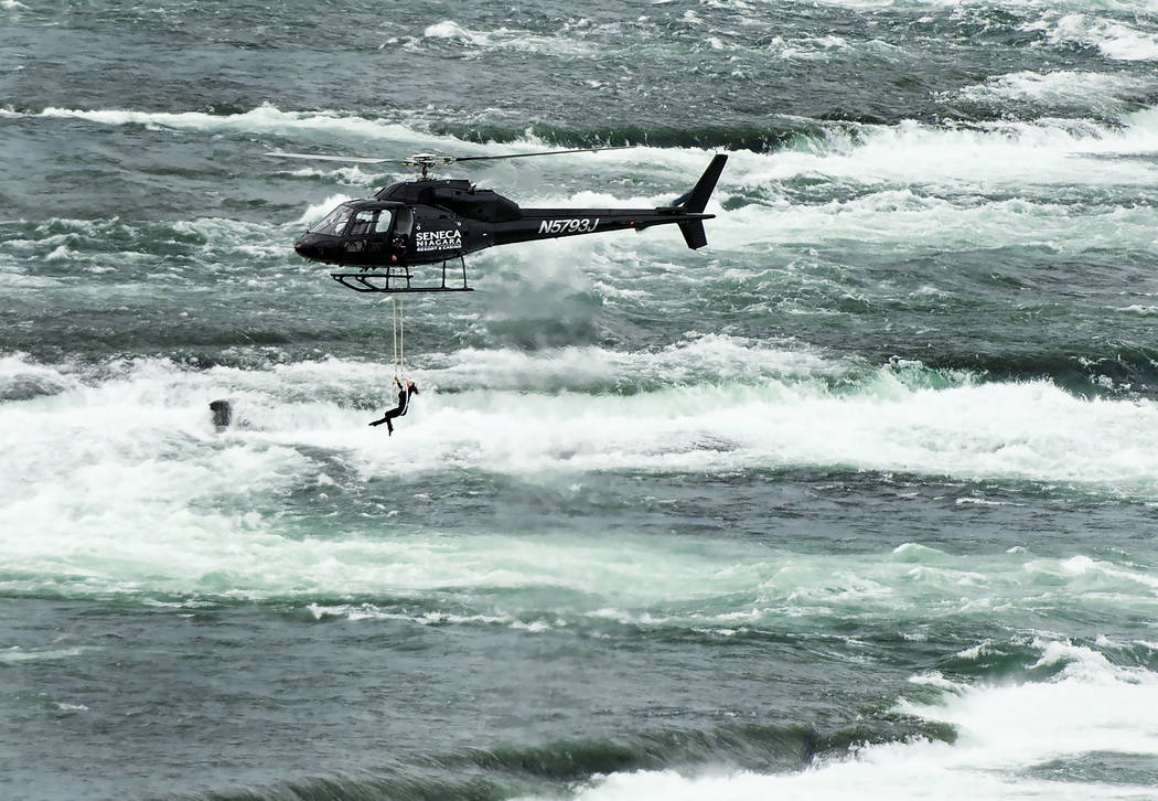 Wallenda hangs by teeth over Niagara Falls from helicopter