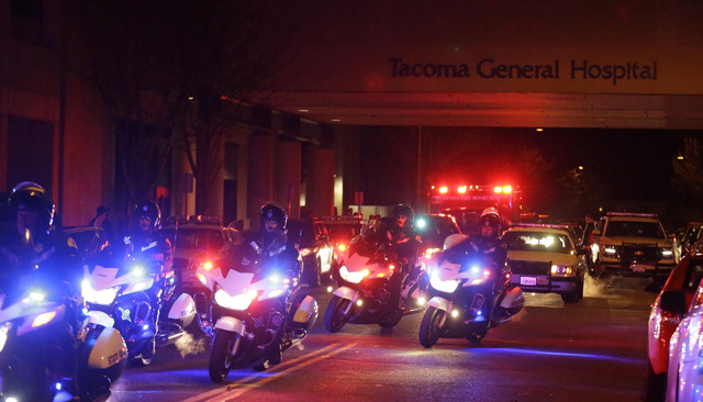 Tacoma Police spokeswoman Loretta Cool said the officer was pronounced dead at the hospital after nightfall.