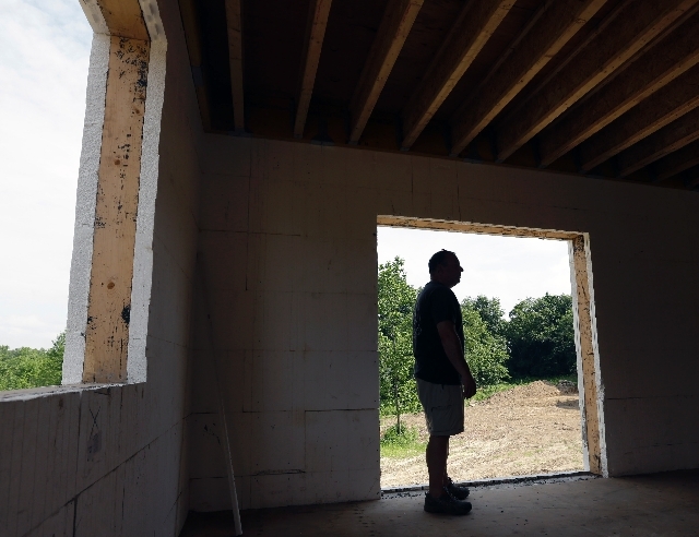 Exterior walls of the nine homes being constructed here by Greenhill Contracting Inc. include a six-inch layer of poured, reinforced concrete sandwiched by about two-and-a half-inches of polystyrene (the stuff from which coffee cups are made). The castle-thick walls, combined with heavily insulated rafters above, an insulated concrete slab below and triple-paned windows create a “building envelope” that makes each house practically as airtight as a thermos — albeit with ventilation.