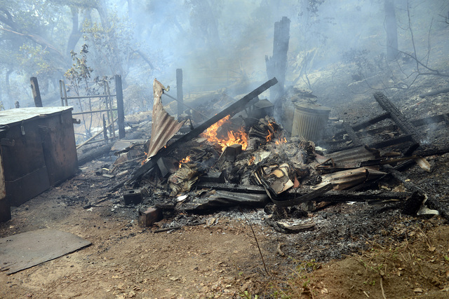 Officials say flames are concentrated in forested ridges above the summer fog line along the coast. Many patches of fire were in areas too steep to be reached.