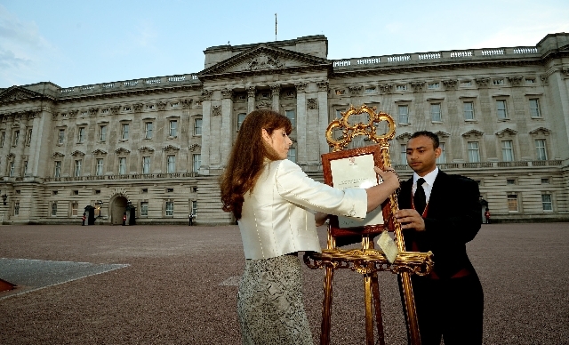 Hundreds were still lining up outside the palace gates Tuesday to get near the ornate easel.
