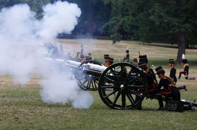 In London, gun salutes were fired, celebratory lights came on, and bells chimed at Westminster Abbey, where William and Kate wed in a lavish ceremony that drew millions of television viewers worldwide.