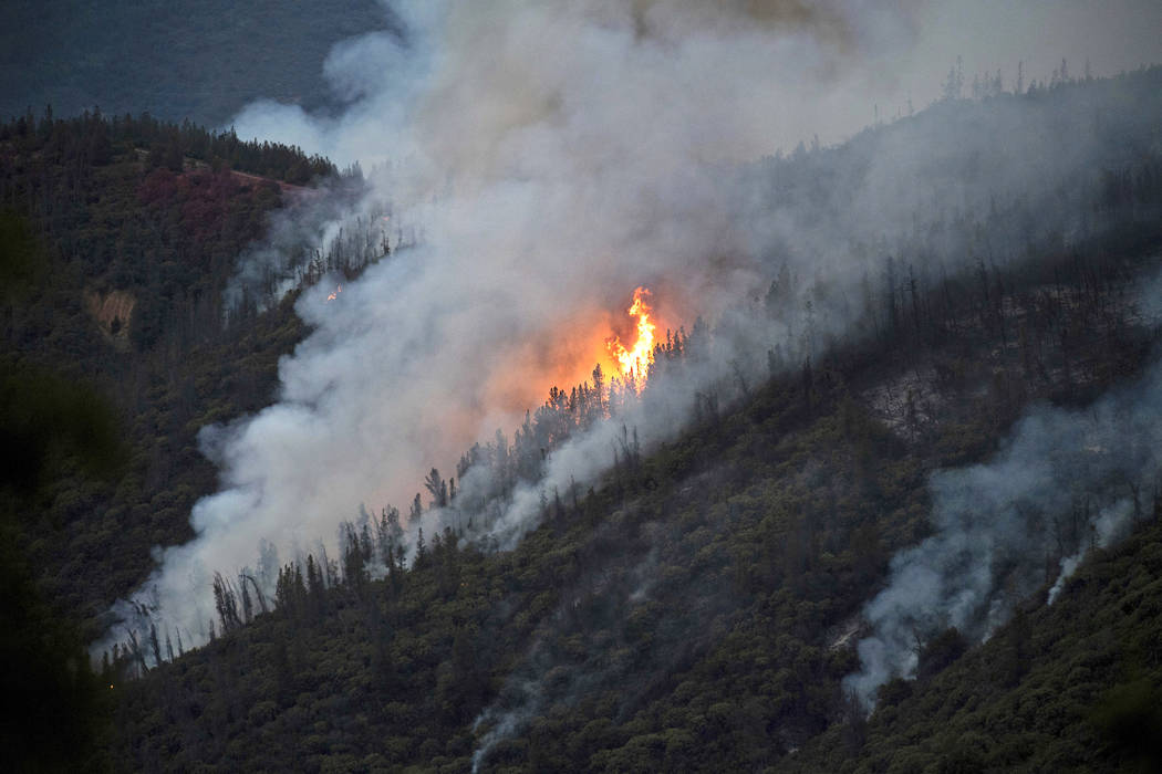 Over nearly two weeks, flames have churned through more than 57 square miles of timber in steep terrain of the Sierra Nevada just west of the park. The fire was just 25 percent contained Tuesday morning.