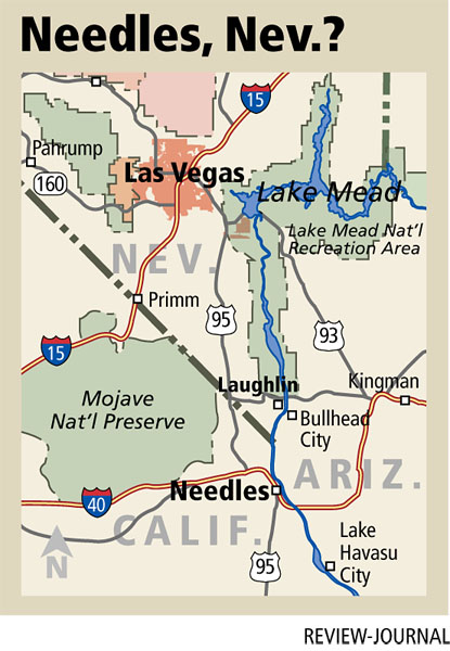 If Needles joins Nevada, it would be 115 miles from the Clark County seat in Las Vegas, he said, compared with 215 miles to the current seat of San Bernardino County.