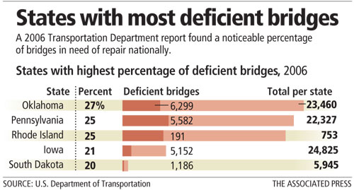 Thirteen percent of the bridges in Minnesota were rated as functionally or structurally obsolete.