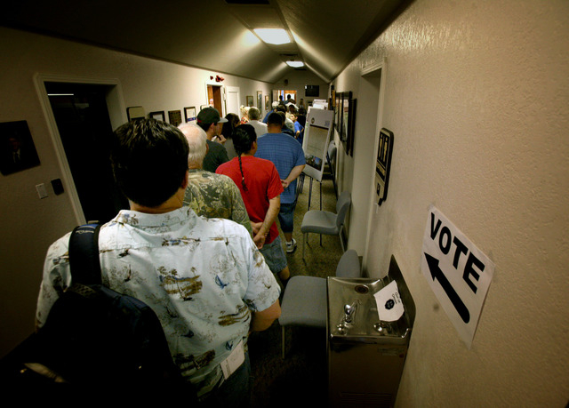 Secretary of State Ross Miller estimated turnout for the June 10 primary would be 15 to 20 percent. Turnout in the past four primaries has ranged from lows of 18 percent in 2008 and 19 percent in 2012 to a high of 30 percent in both 2006 and 2010, when competitive gubernatorial and U.S. Senate contests drove interest.