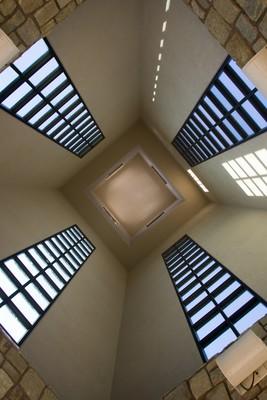 The school's 24-foot ceilings are lined with windows letting natural light shine through.