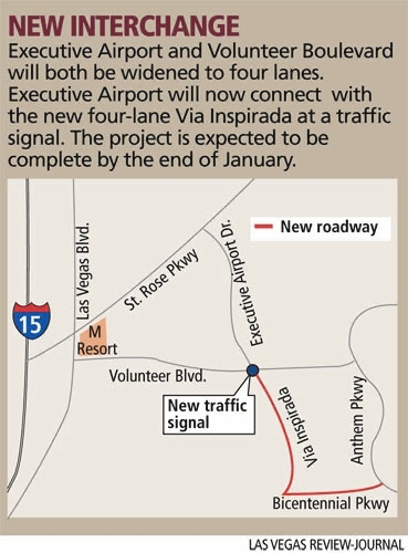 Henderson is widening Executive Airport Drive and Volunteer Boulevard from two lanes to four lanes. It is also building a completely new four-lane road called Via Inspirada.
