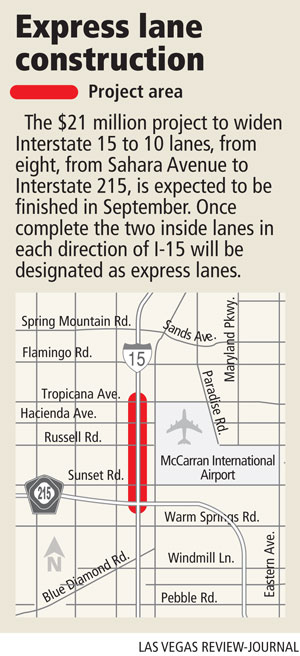 State transportation officials believe express lanes will help reduce congestion in the resort corridor of I-15 because most of the 250,000 drivers that traverse I-15 do not use the three exits between Russell and Sahara anyway.