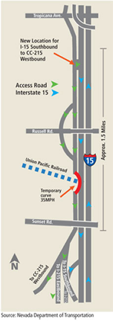 • For the next two years, watch for lane shifts on the Las Vegas Beltway between Interstate 15 and Windmill Lane as crews widen the freeway. Bridges at Paradise Road, Warm Springs Road, Robindale Road and the airport connector tunnel also are being widened.