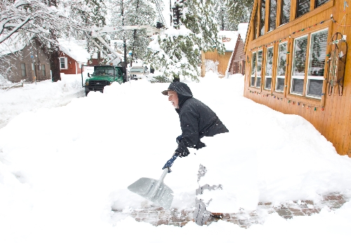 "I've been shoveling for two days," said Jill Guttman, who is spending her first winter in the mountain community 35 miles from Las Vegas. "Plowing is kind of futile because of the berms."
