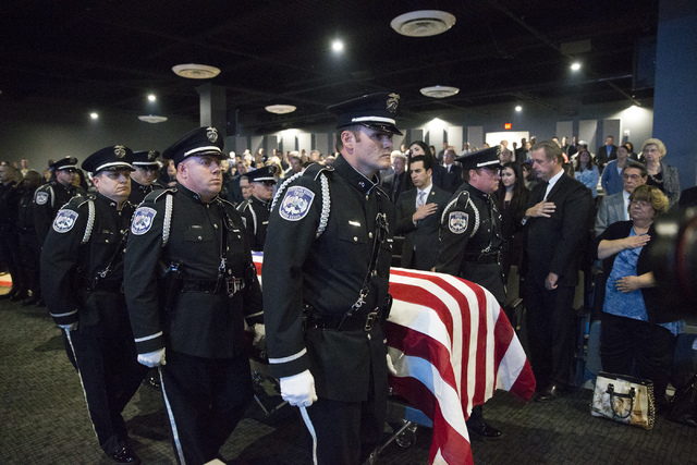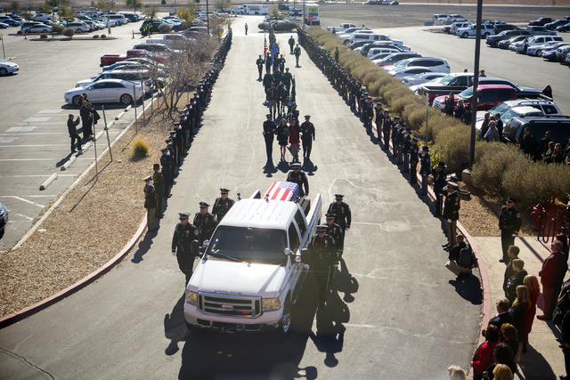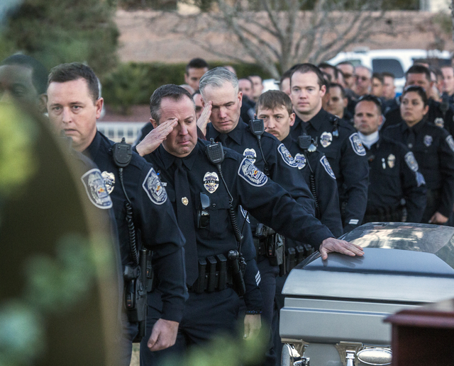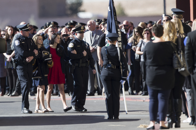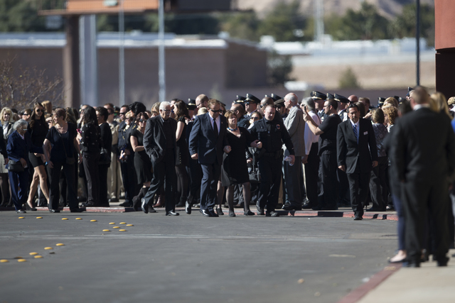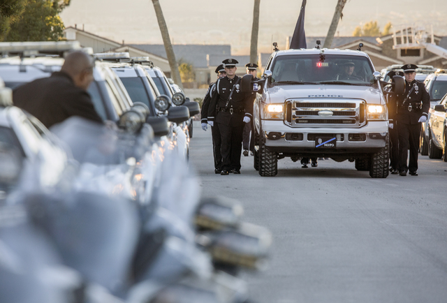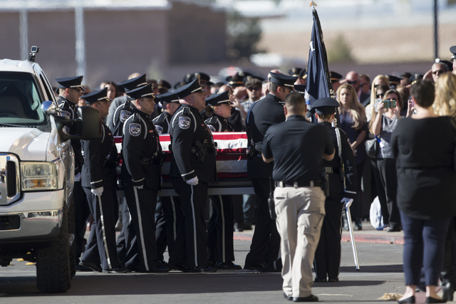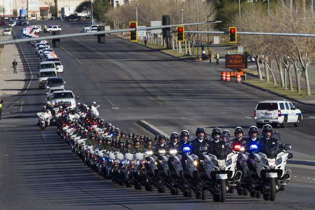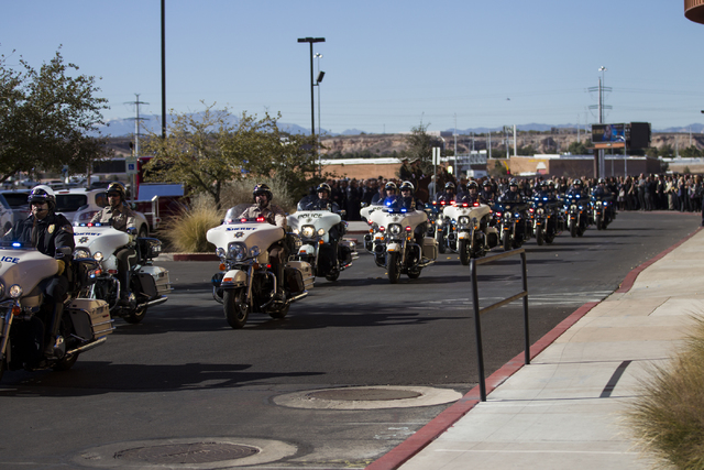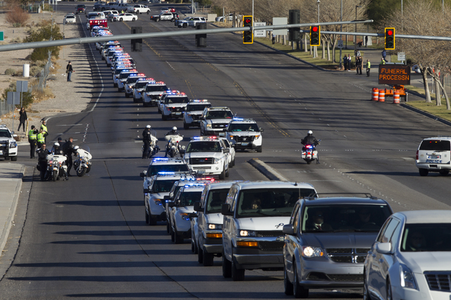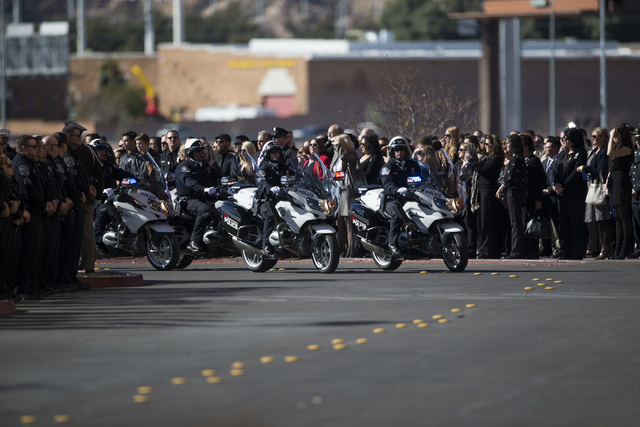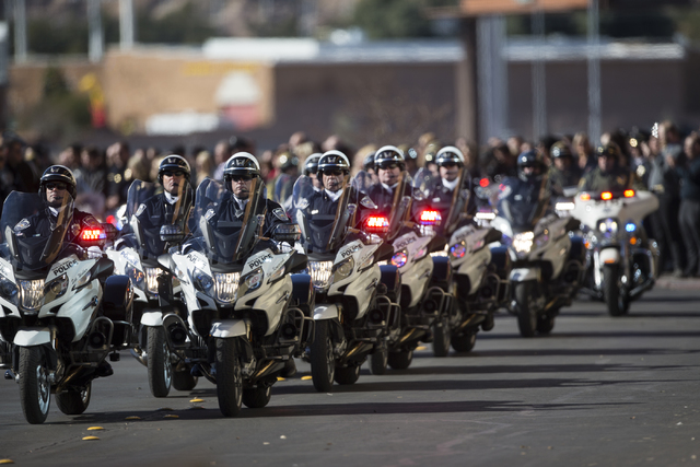 After the service, a lengthy police motorcade escorted the Parque family to a graveside service at the Palm Mortuary at 6701 N. Jones Blvd. He is survived by his wife, Jessica, their 3-year-old, Riley, his parents and a sister.