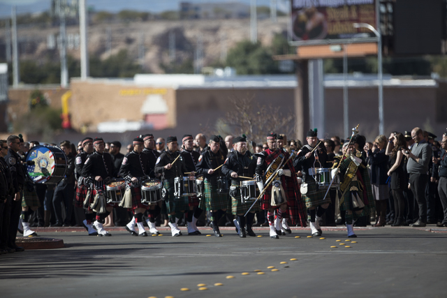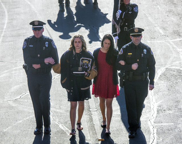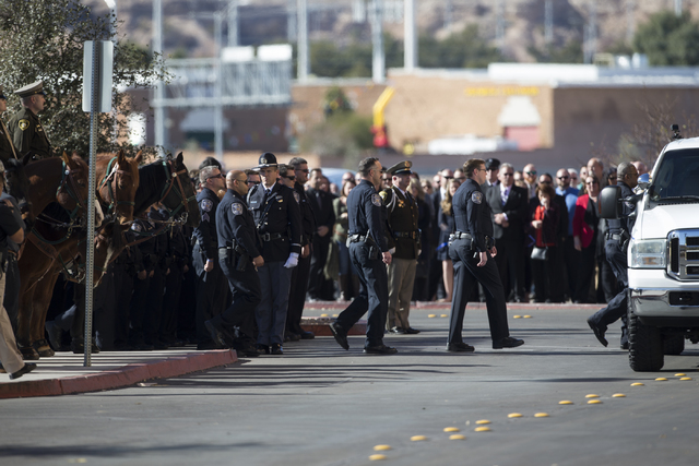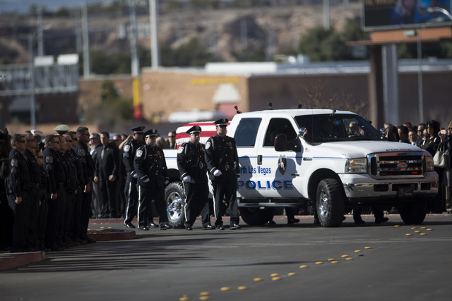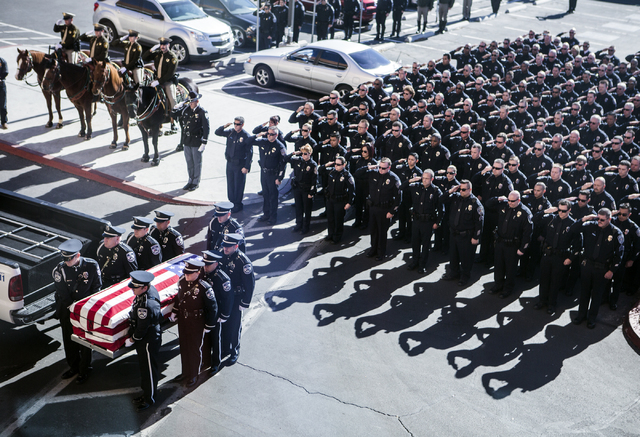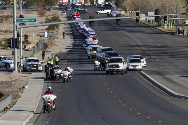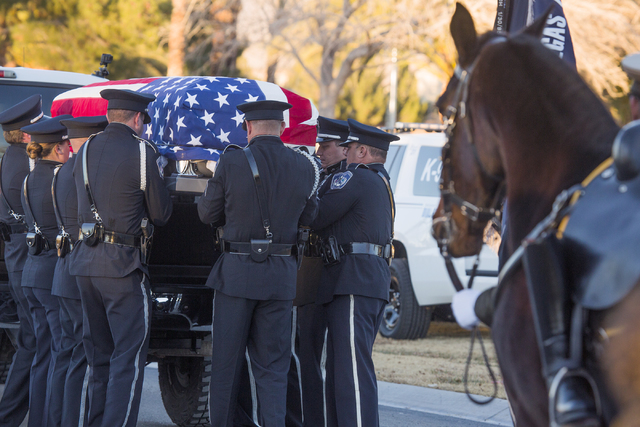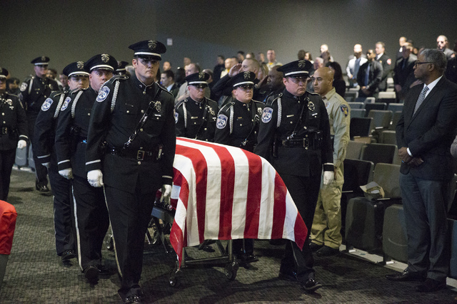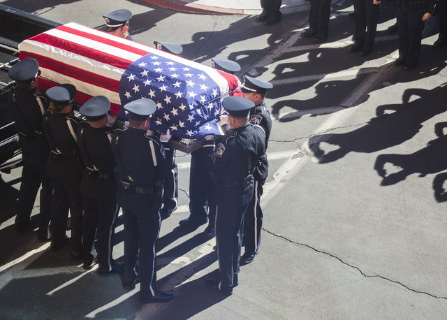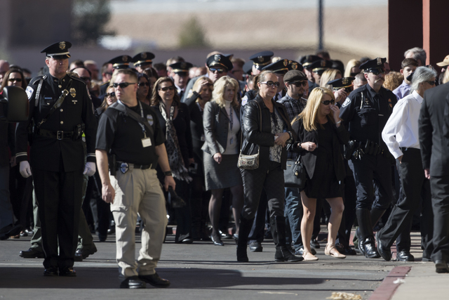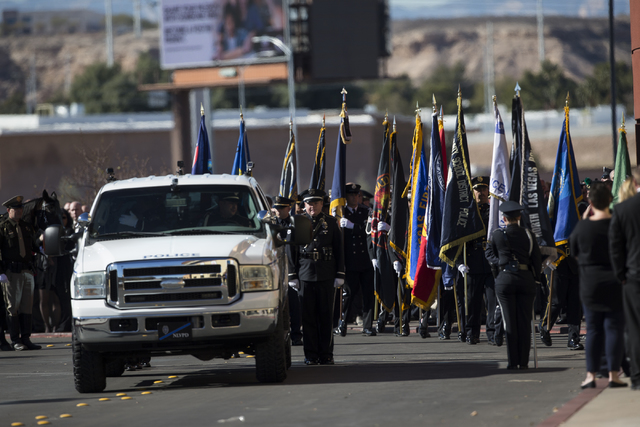 After the service, a lengthy police motorcade escorted the Parque family to a graveside service at the Palm Mortuary at 6701 N. Jones Blvd. He is survived by his wife, Jessica, their 3-year-old, Riley, his parents and a sister.