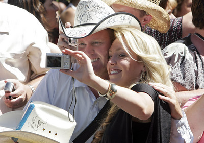 "Hottie! She's a hottie. Got a smokin' little body," he bawled, smothered in enough denim to cover the infield at Yankee Stadium. "String bikini and a barbed-wire tat. She's a rockin' that cowboy hat."