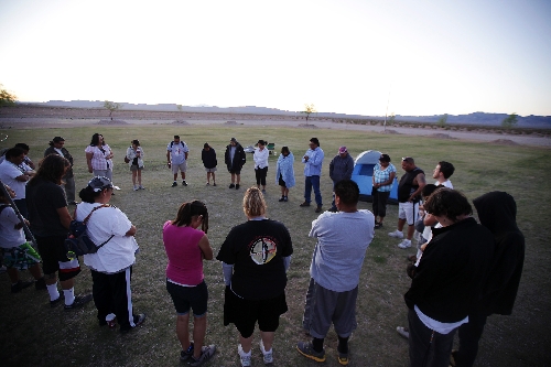 More than 20 members of the Moapa Band of Paiutes and other tribes from Nevada, Utah and Arizona trudged over rocky trails and a dirt road that cuts across federal trust lands that have belonged to the Paiutes since 1875 and where they lived for centuries before that.