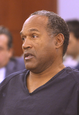 Even TV personality Star Jones was in the courtroom to watch Simpson, who was wearing navy blue inmate garb and a somber face, walk in with his hands shackled at his waist.